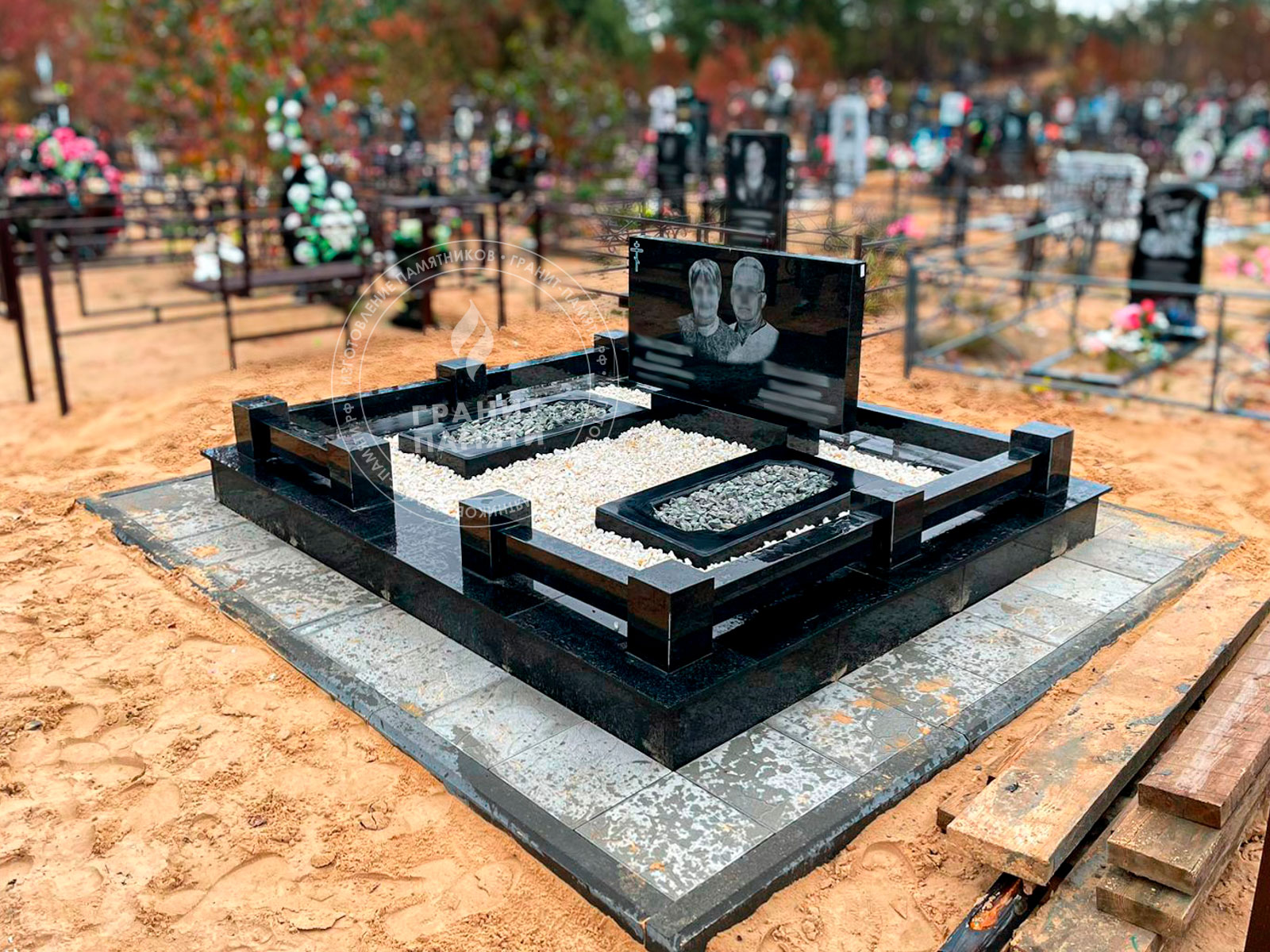 / Двойной гранитный памятник, прямой
